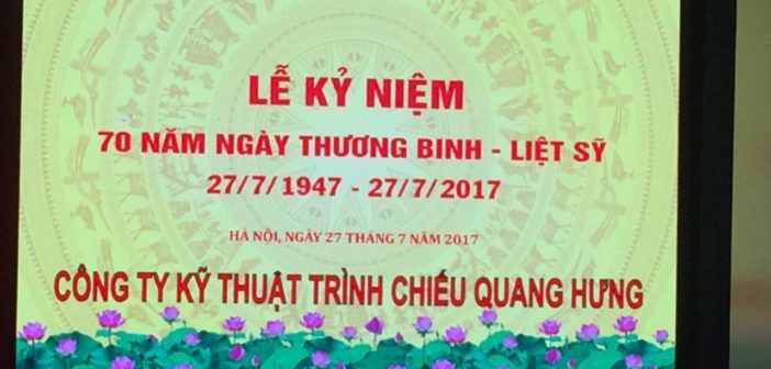 Hòa cùng không khí kỉ niệm 70 năm ngày Thương Binh – Liệt sỹ tại Trung tâm hội nghị Quốc gia Hà Nội. Led Quang Hưng hân hạnh được lựa chọn là nhà cung cấp thiết bị màn hình led để trình chiếu và ghi lại những tấm lòng, tình cảm của đảng và nhà nước dành cho những Mẹ Việt Nam Anh hùng, Anh hùng lực lượng vũ trang, thương binh, bệnh binh, đại diện thân nhân liệt sĩ cả nước. Chương trình được truyền hình trực tiếp trên VTV.